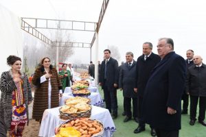 President Emomali Rahmon visits the exhibition of agricultural products of Jaihun