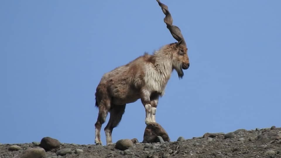 The markhor, known for its impressive spiral horns, is native to Central Asia and primarily found in the Hissor Range, Darvaz District, and Wakhan Corridor.