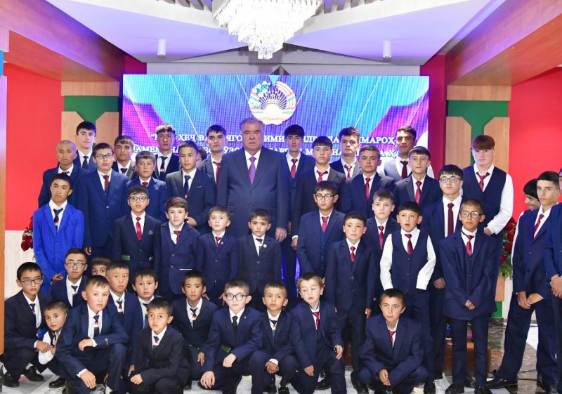 As part of the social policy of the Government of the Republic of Tajikistan and the continuation of care for orphans, the Leader of the Nation presented 100 teenagers with a set of clothes, stationery, sweets and other gifts.