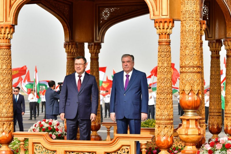 The President of the Republic of Tajikistan, Leader of the Nation, Honorable Emomali Rahmon, sincerely welcomed the President of the Kyrgyz Republic, Honorable Sadyr Japarov, as a sign of high respect.