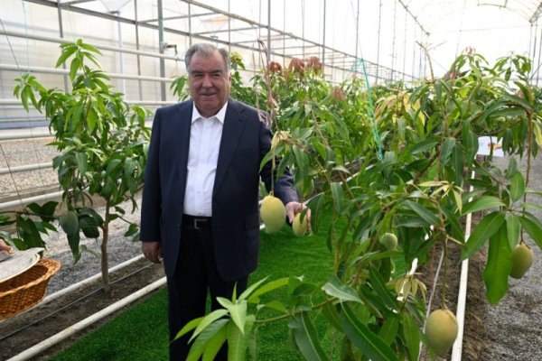 During the tour of the farm, the Leader of the Nation, Emomali Rahmon, was presented with the results of the work of orchardists and vine growers.
