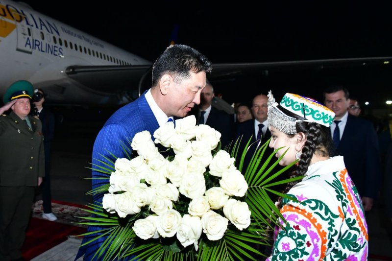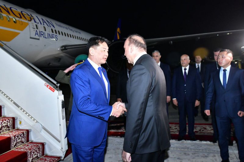 President of Mongolia Ukhnaagiin Khurelsukh Arrives in Tajikistan on a State Visit