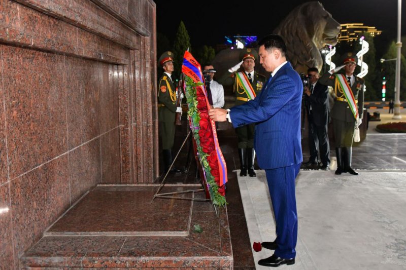 The President of Mongolia was accompanied at the wreath-laying ceremony by First Deputy Prime Minister of the Republic of Tajikistan Hokim Kholiqzoda and other senior officials.