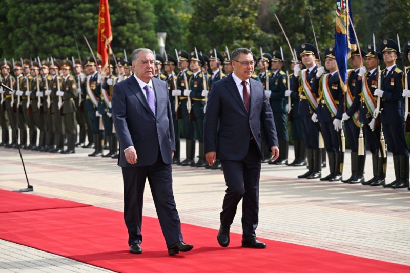 The welcoming ceremony began with a report by the commander of the guard of honor to the high-ranking guest, performance of the national anthems of the two countries, passing by the guard of honor, paying tribute to the State Flag of Tajikistan, and getting acquainted with the official delegations of the two sides, and ended with a ceremonial march and the passing of the guard of honor in front of the Heads of the two states.