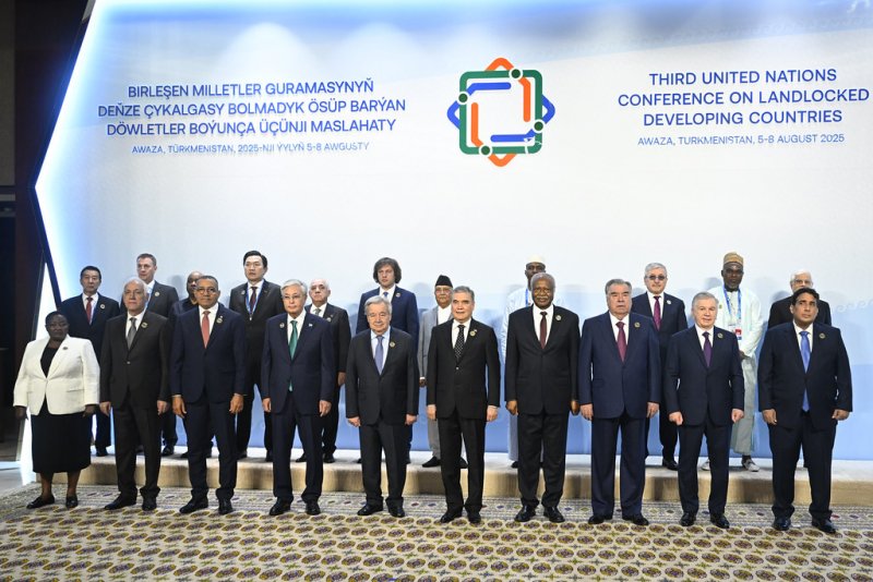 DUSHANBE, 05.08.2025 (NIAT Khovar) – On August 5, the President of the Republic of Tajikistan, Leader of the Nation, Honorable Emomali Rahmon attended the official welcoming ceremony of heads of state and delegations of the Third United Nations Conference on Landlocked Developing Countries, which was held with the participation of the Chairman of the People’s Council of Turkmenistan, Honorable Gurbanguly Berdimuhamedow, United Nations Secretary-General António Guterres, President of the UN General Assembly Philemon Jan, heads of state and government, and high-ranking delegations.