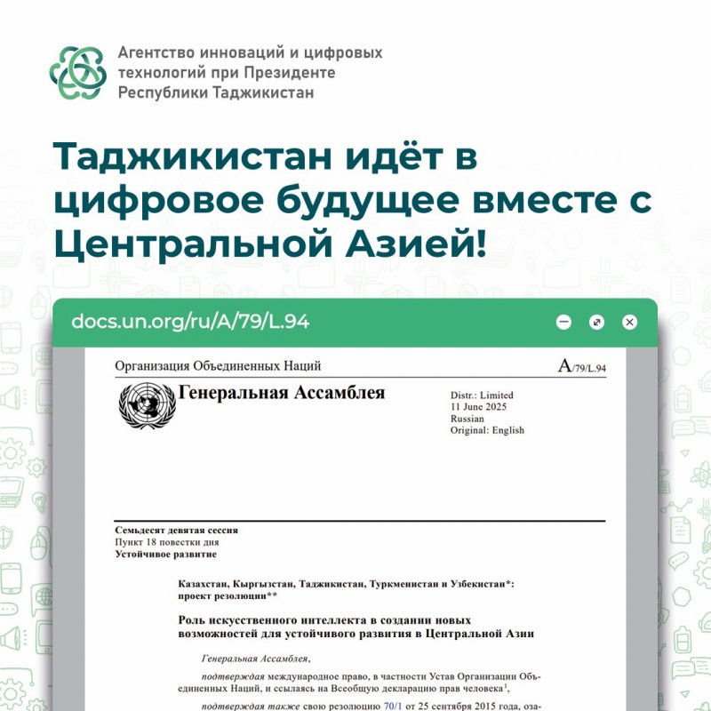 An important part of the initiatives is the creation of the Regional Center for Artificial Intelligence of Central Asian Countries in Dushanbe. The center will promote knowledge sharing, training of specialists, development of educational programs, and self-regulation mechanisms for safe and reliable AI systems.