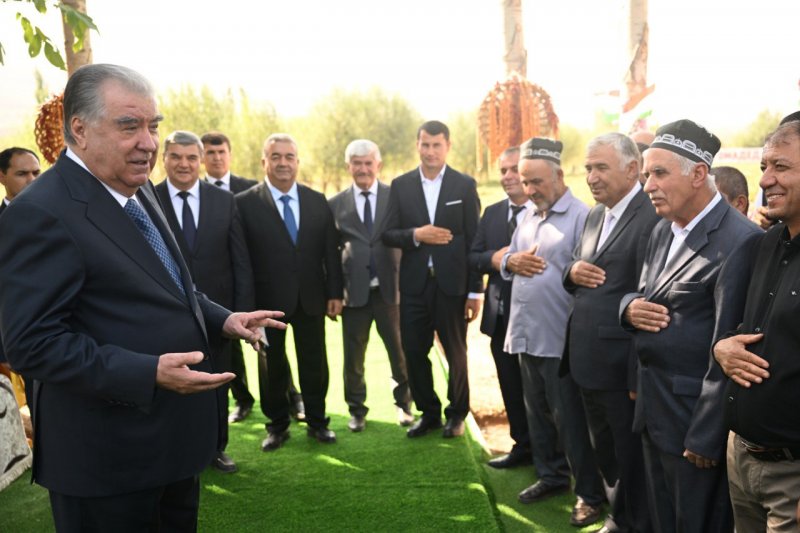 President Emomali Rahmon visits the Chanoro farm in Fayzobod district